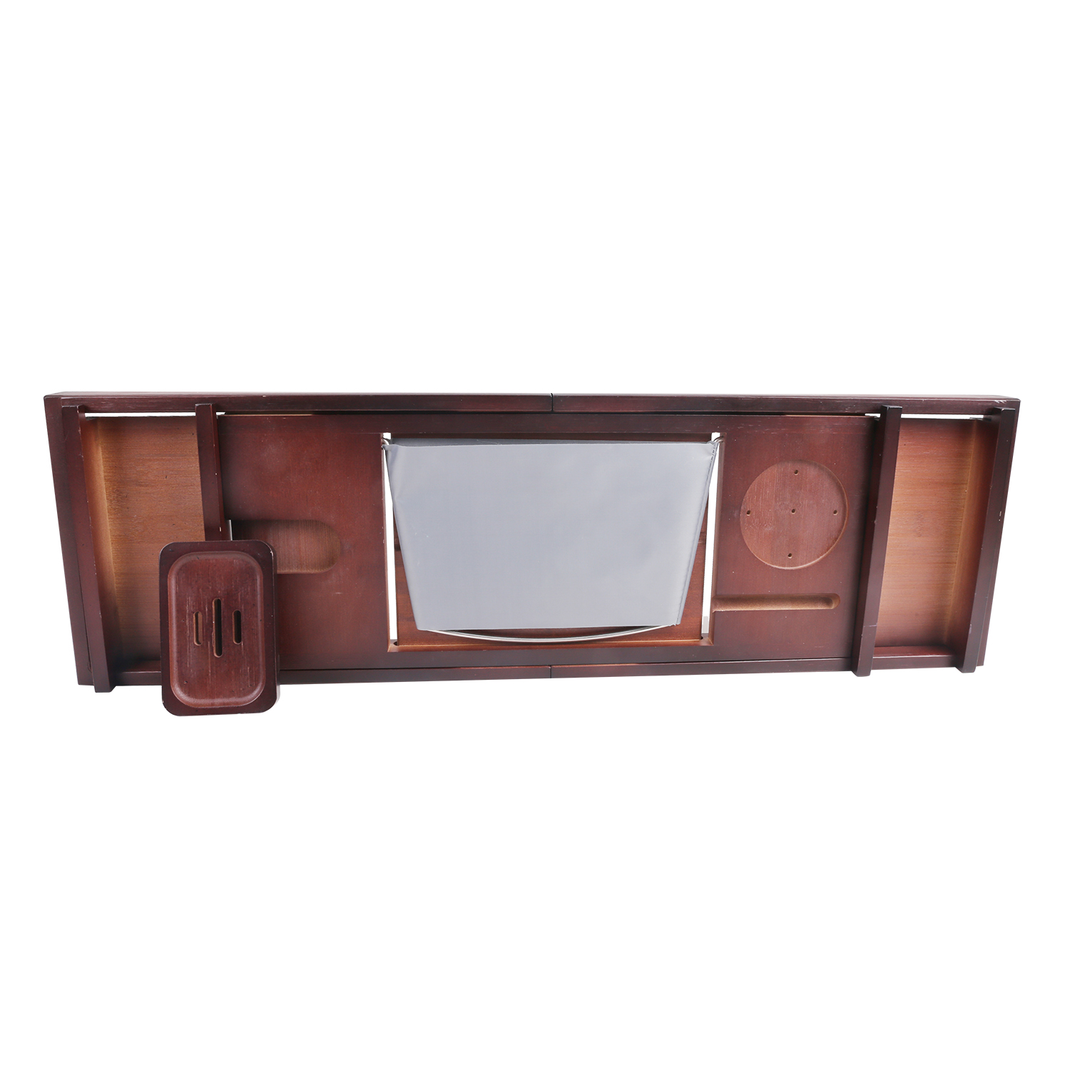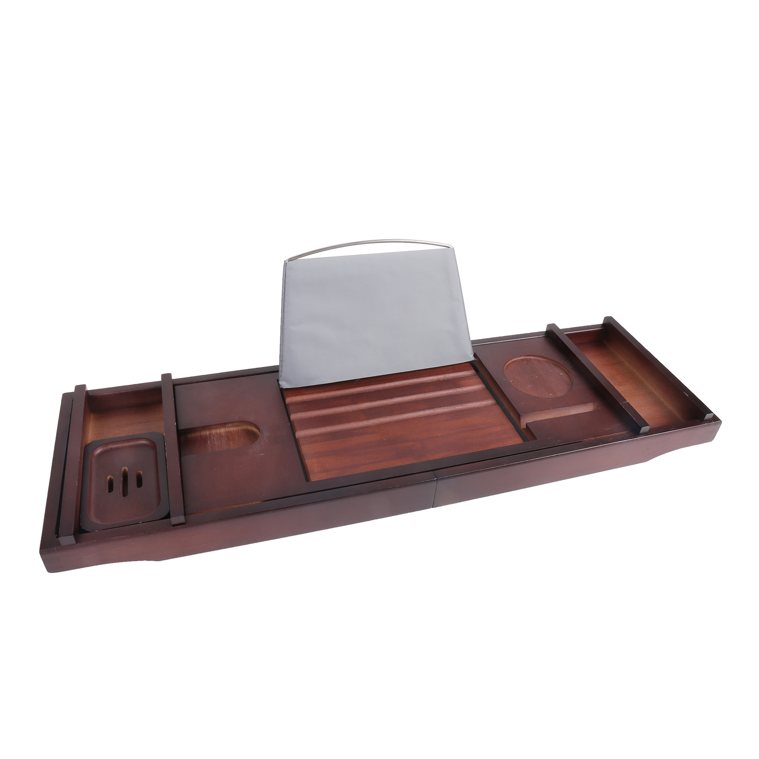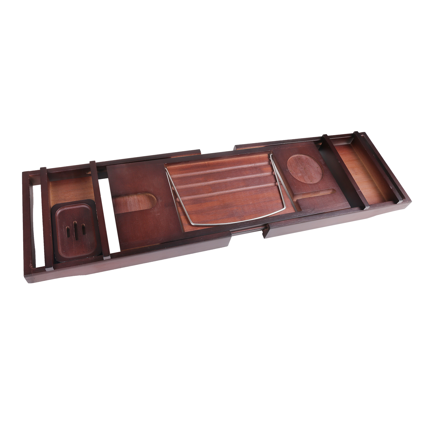 - HUMANIZED DESIGN- This bathtub caddy tray was specially designed to fit most bathtubs available on the market. It has the biggest extendable sides, up to 43 Inches. Convenient built-in bathtub wine glass holder, two side-trays, extendable handles, and soap holder make it perfect for two bathers.